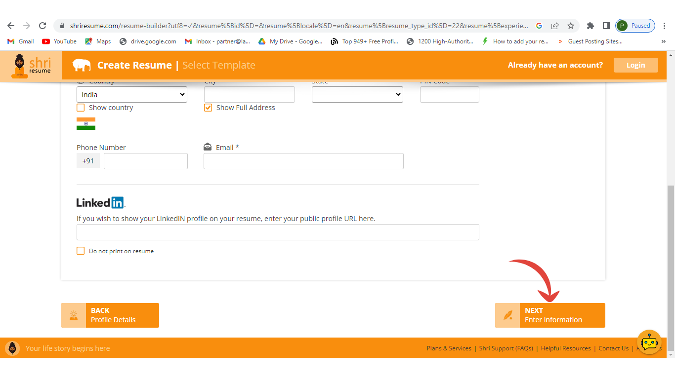 Step 1: Visit their official website and Click on Start Your Resume