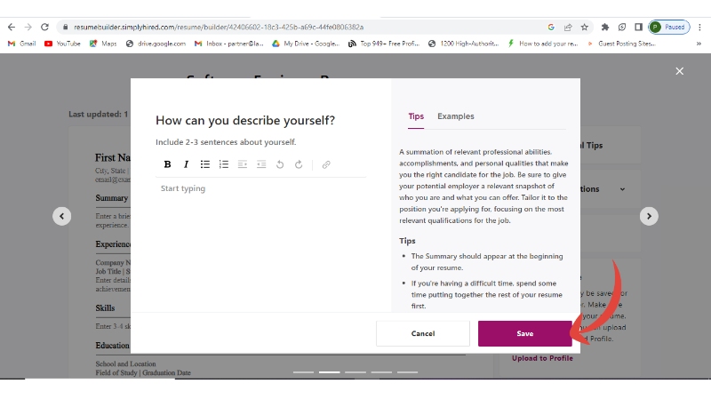 Simplyhired is a job search engine offering services like job search, resume builder, resume upload, job advice, etc. It offers a resume builer with great functioning including its intuitive interface, AI-writing suggestions, well formatted resume templates, professional looking design with simplicity, catchy keywords, etc.