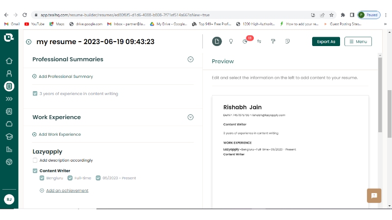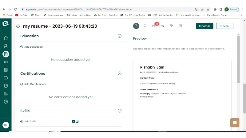 Step 3: Go to my resume section and add your details