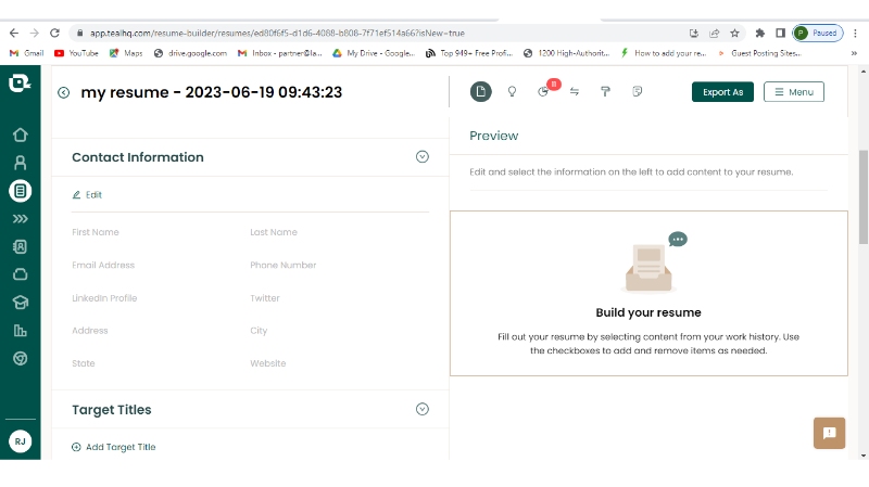 TealHQ is a platform that offers job seekers a job tracker and it assists job seekers to land their dream jobs in the least required time. It also offers a resume builder within the online tool which is capable of creating your resume in just some minutes. All you need to do is to add your basic information and a ready-made resume is waiting for you.