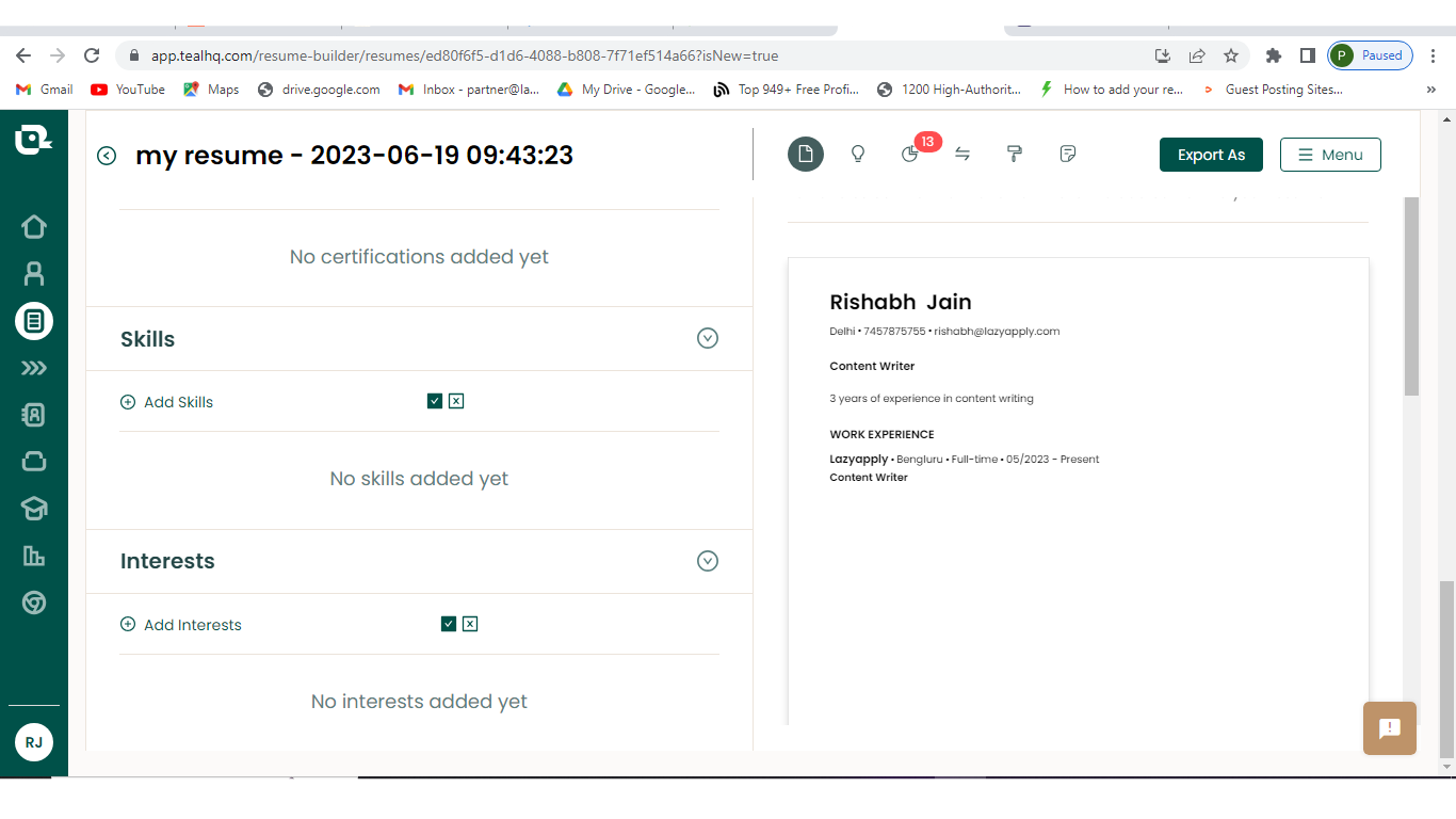 TealHQ Resume Builder